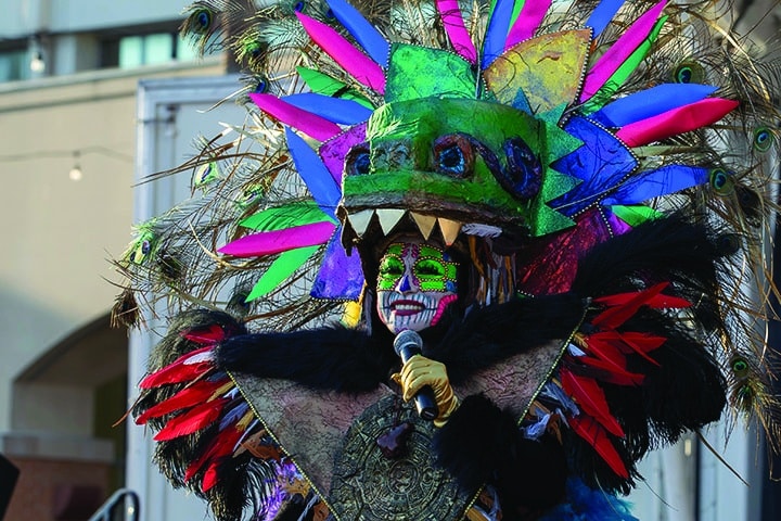Wendy B. Lara of Reynosa, Tamaulipas, Mexico, has performed as a Catrina for the past seven years. Lara was one of seven Catrinas to perform at Fiesta de Palmas, representing the pre-Hispanic feathered serpent deity Quetzalcoatl.